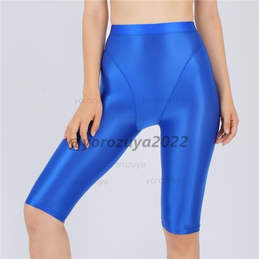 - 152-204-16 光沢 ツヤツヤ Vカット ロングスパッツ 【ブルーLサイズ】レディース 女性 下着 セクシー パンツ ショーツ ランジェリー.1