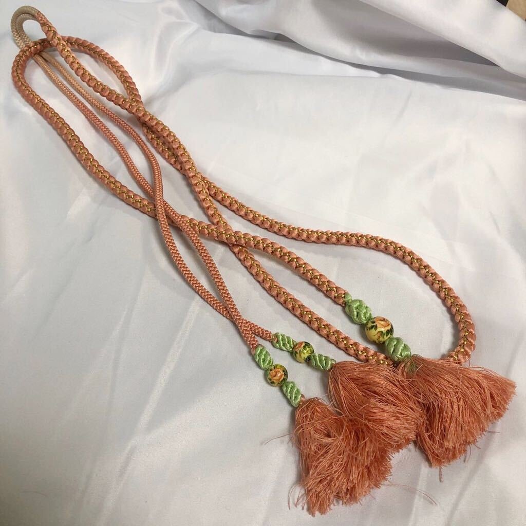 - 帯締め 帯留め 帯紐 帯留 帯締 和装小物 着物 帯紐 和服 和装 ⑦ ラメ入り サーモンピンク 【中古】