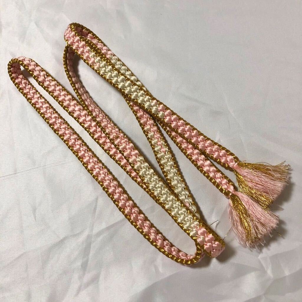 - 帯締め 帯留め 帯紐 帯留 帯締 和装小物 着物 帯紐 和服 和装 ⑧ ピンク ゴールド 金 【中古】