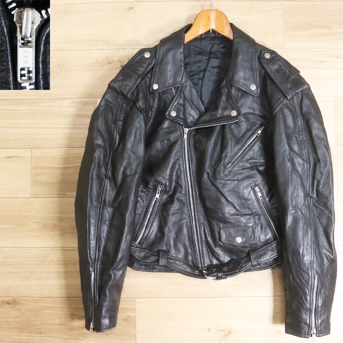 > W1R/Y6.11-2 ユーロ古着 ダブルライダースジャケット 本革 レザージャケット 革ジャン 皮ジャン バイカー 48 メンズ ブラック