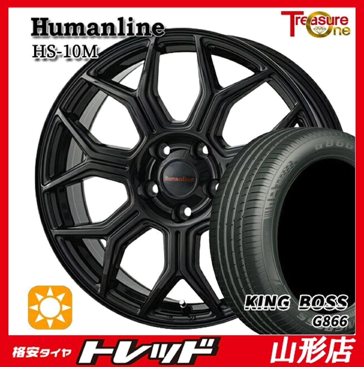 > 山形店 新品 タイヤホイールセット ヒューマンライン HS-10M 17インチ 7.0j 5H114.3 +38 BK KINGBOSS G866 205/55R17 2024年製 ヴォクシー