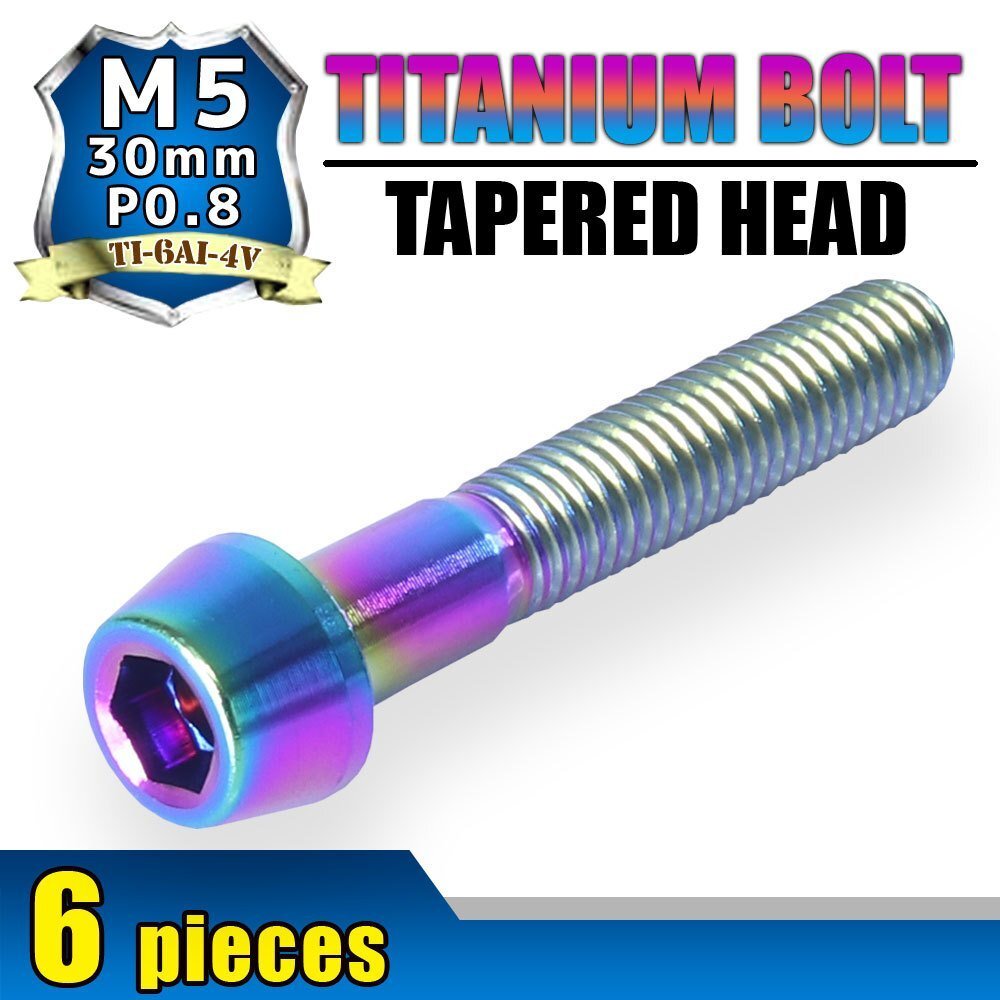 > メール便OK!M5×30 P0.8 チタンボルト 6本セット 5mm 30mm ピッチ0.8 焼き色 テーパー ボルト バイク スクリーン カウル 車 自転車 ステム
