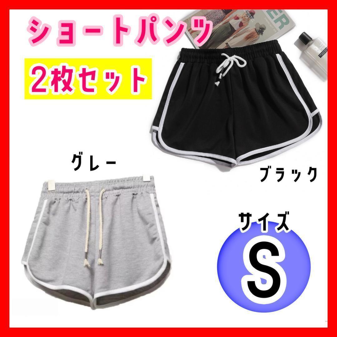 > 【2枚セットS】黒グレー ライン入り ショートパンツ ハーフパンツ ルームウェア 半パン スポーツウェア ウォーキング ランニング 部屋着