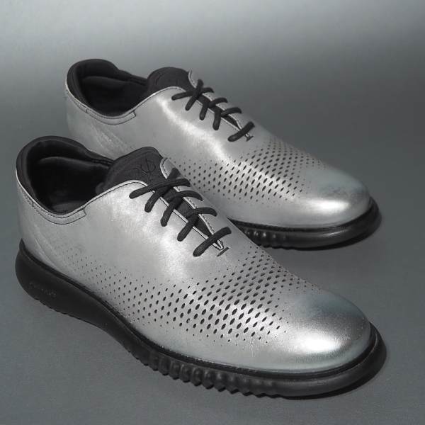 > 美品!! US 8 1/2 M / 26.5cm COLE HAAN コールハーン ZEROGRAND 銀レザー スニーカー
