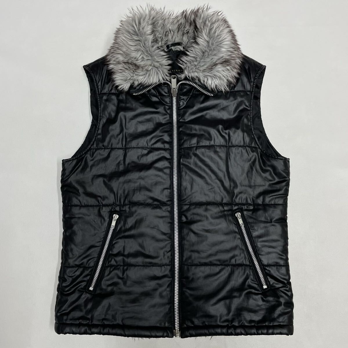 - 00s y2k お兄系 ファー ベスト ブラック 光沢 シルバーファー