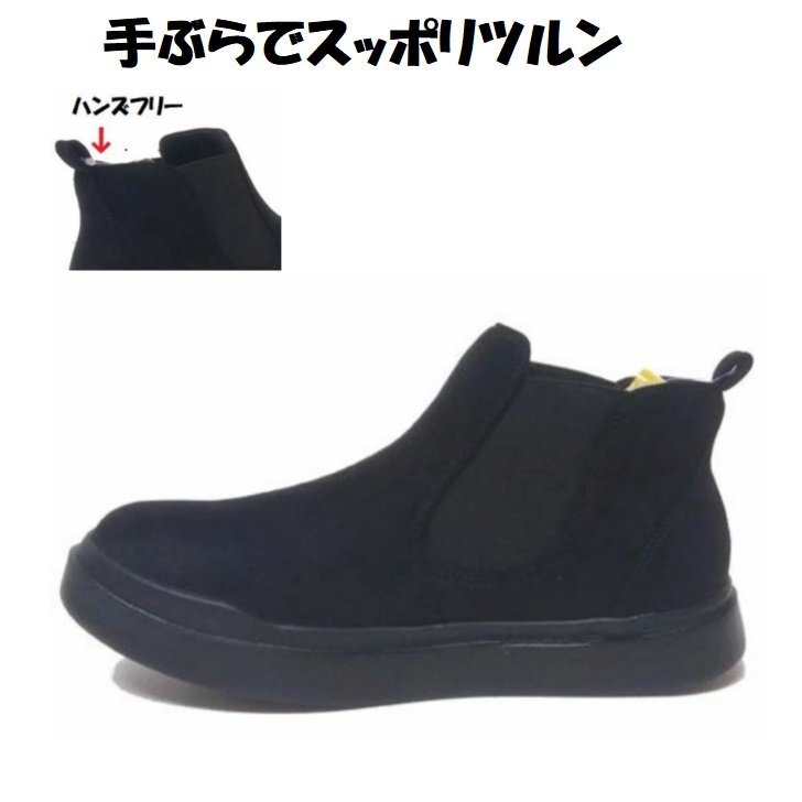- 手を使わずに履ける ハンズフリー サイドゴアブーツ 23.5 パータム 26620 黒 防水仕様 婦人 レディース 防寒 ショート ハーフ ブーツ