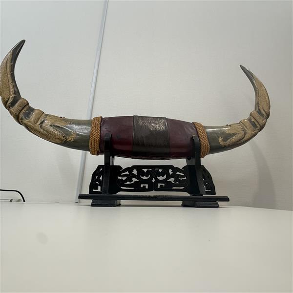 - 1円出品!! アンティーク レトロ 調 水牛 角 牛角 バッファロー 置物 龍 装飾 オブジェ インテリア 飾り 現状品 個人保管品 応接間 10995