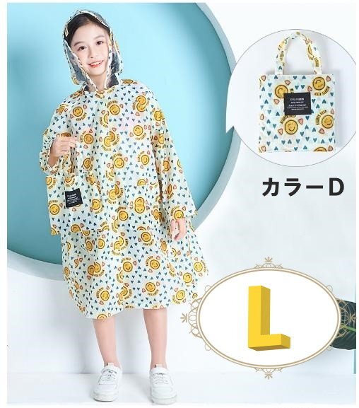 > レインウェア 合羽 レインウェア キッズ 子供用 雨具 通学 カラーD Lサイズ 120㎝-135cm n363