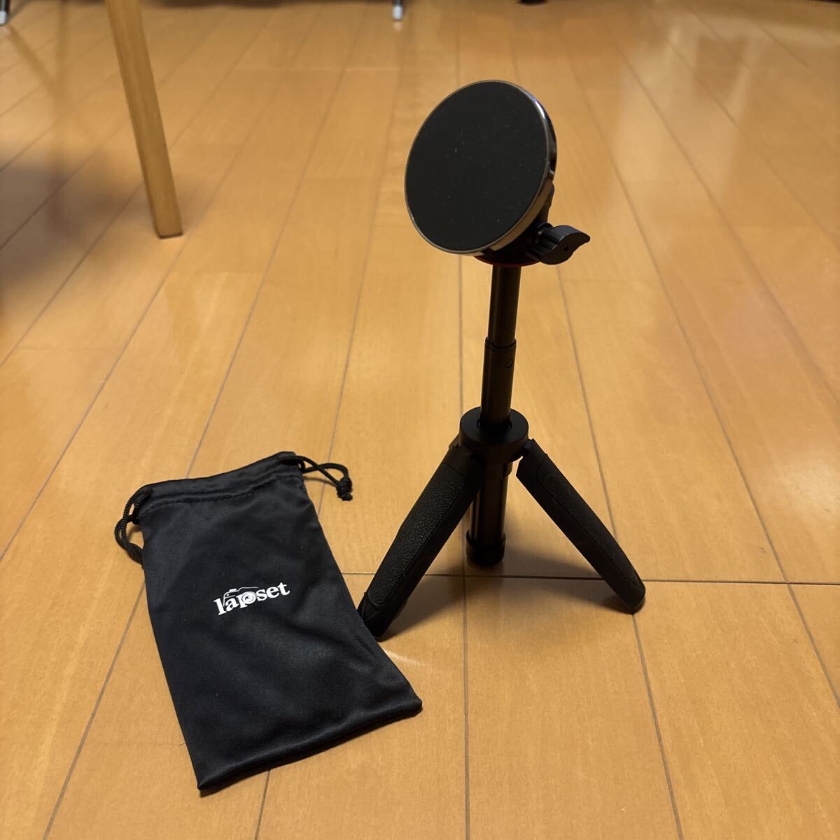 - マグネット式 スマホスタンド ミニ三脚 コンパクト 収納袋付 lapset