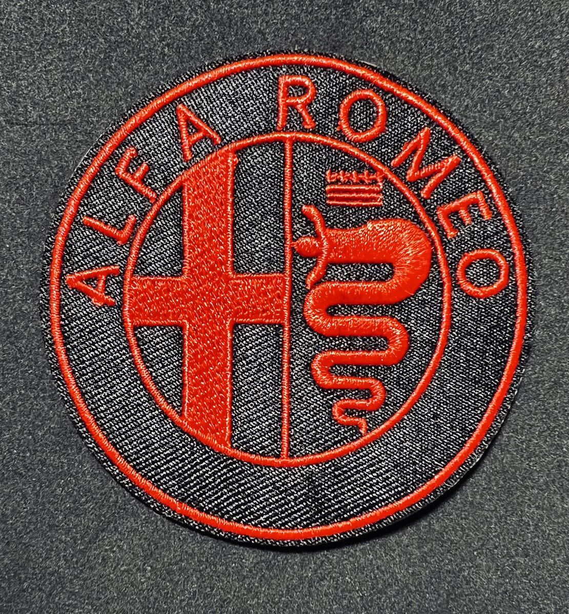 > ★ Alfa Romeo アルファロメオ 刺繍ワッペン 70mm BLK/RED 黒赤 裏糊付 アイロン接着★