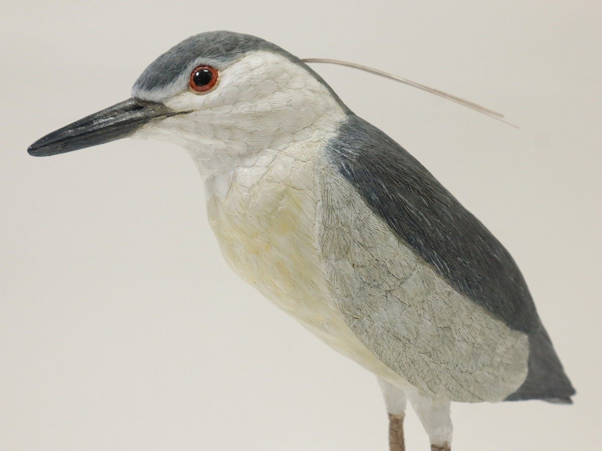 > ゴイサギ バードカービング デコイ 木製 細密彫刻 ハンドメイド 高さ約18㎝ 11-A011