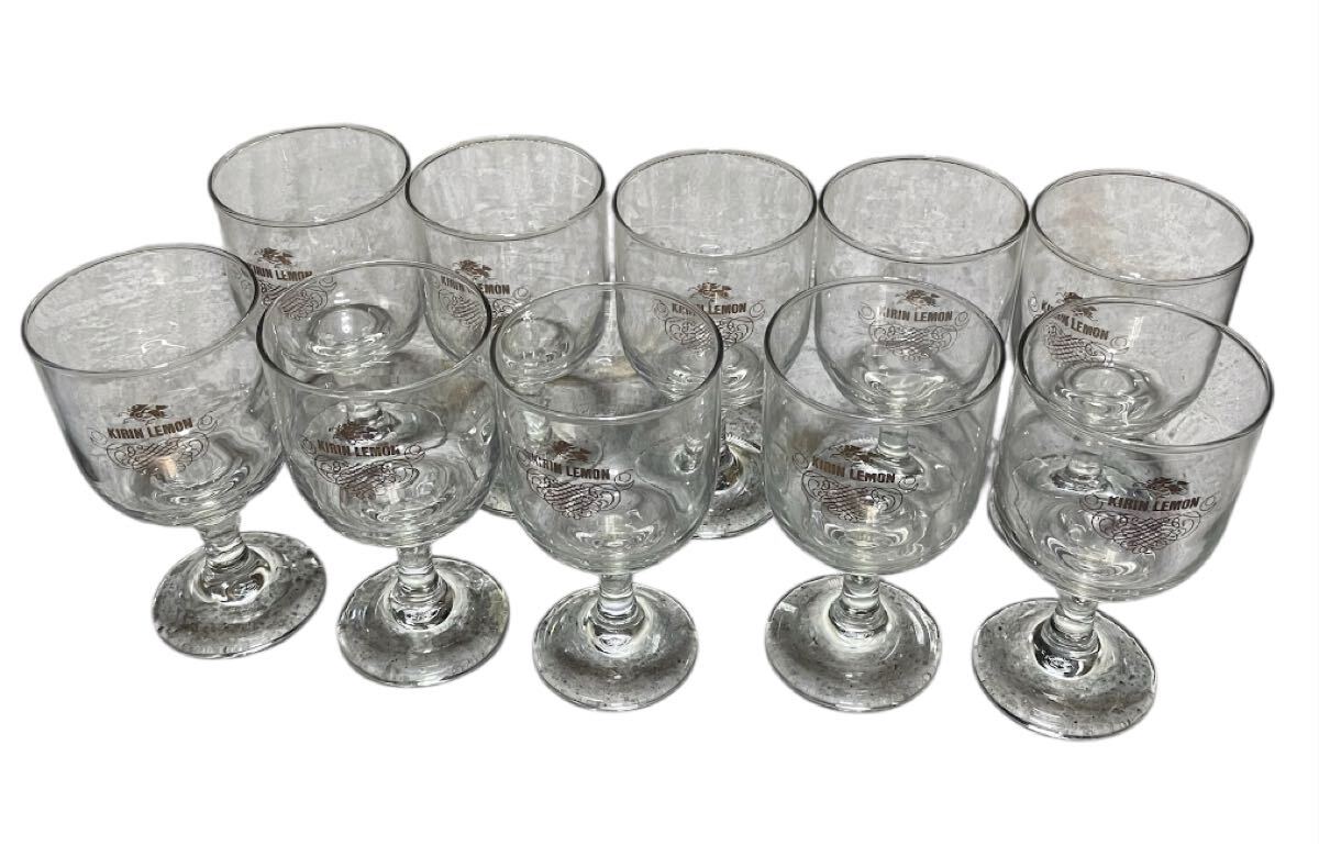 - 超希少デッドストック キリンレモン 昭和レトロ ノベルティ 脚付きグラス 10脚セット 元箱完備 ヴィンテージ