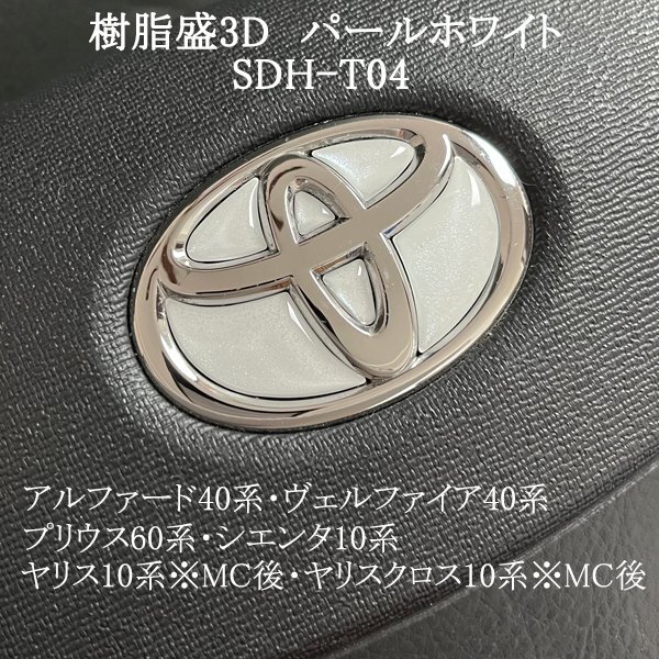 - トヨタ プリウス60系 ステアリングエンブレム パールホワイト ハンドル SDH-T04 樹脂盛立体3Dシール ZEROWIN