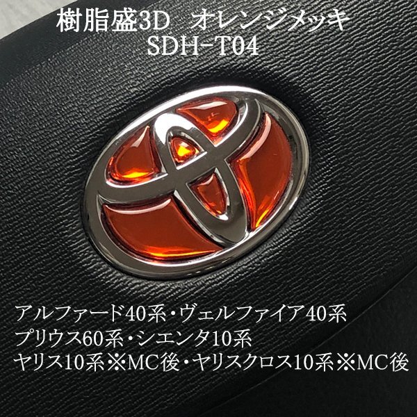 > トヨタ ヤリス10系※MC後/ヤリスクロス10系※MC後 ステアリングエンブレム オレンジメッキ ハンドル SDH-T04 樹脂盛立体3Dシール ZEROWIN
