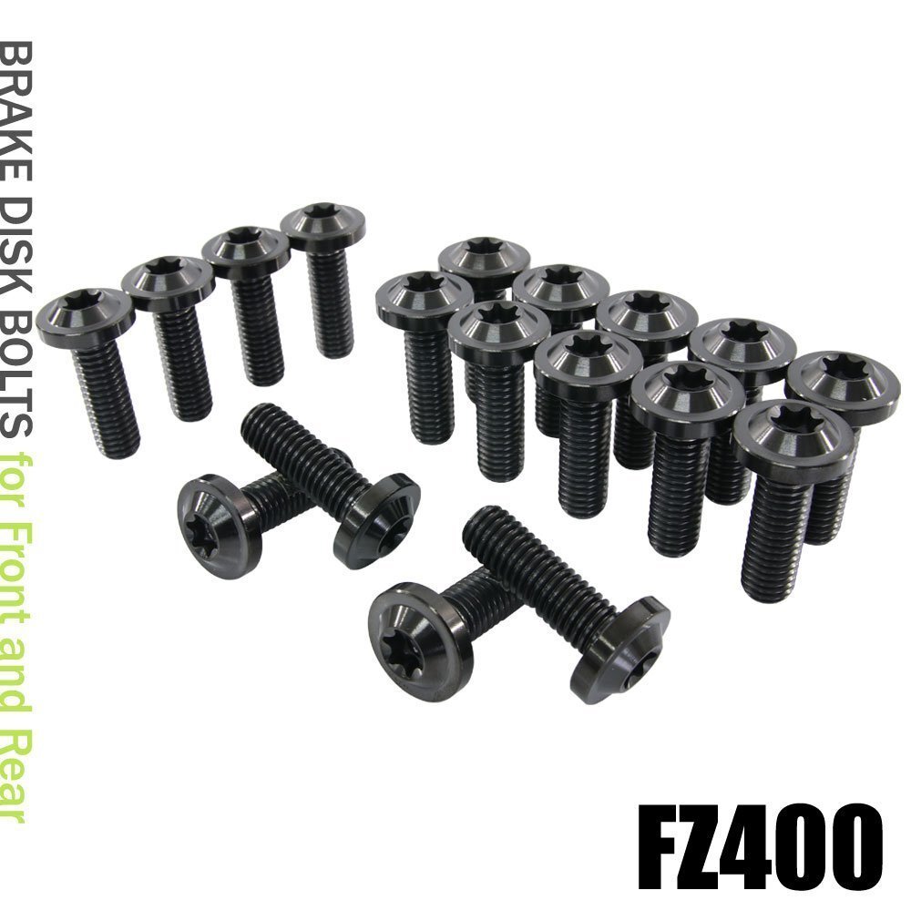 メール便OK! チタンボルト ヤマハ FZ400専用 ブレーキディスクボルト 前後セット フロント リア 18本セット M8×25 P1.25 ブラック