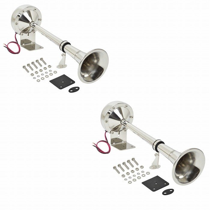 - 2本セット トランペット型 マリンホーン 12V ステンレス製 船 警報音 汽笛 ボート ホーン ヨット 漁船 遊漁船 クルーザー