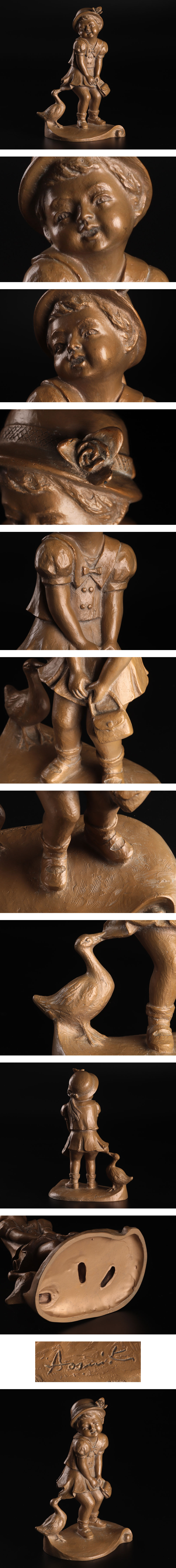 【流】清河宗翠 銅製 ブロンズ像 「おでかけ」 高30cm UD343拍卖