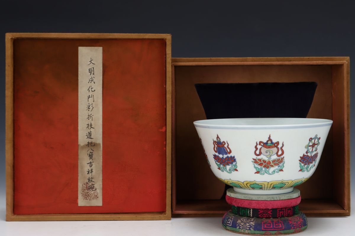 - 永し 明時代 大明成化年製 斗彩折枝蓮紋 八寶吉祥紋碗 古陶磁器 陶芸 皿 中国陶瓷器 唐瓷 置物擺件 古美術品 収集 旧家蔵出 中国唐物 A354