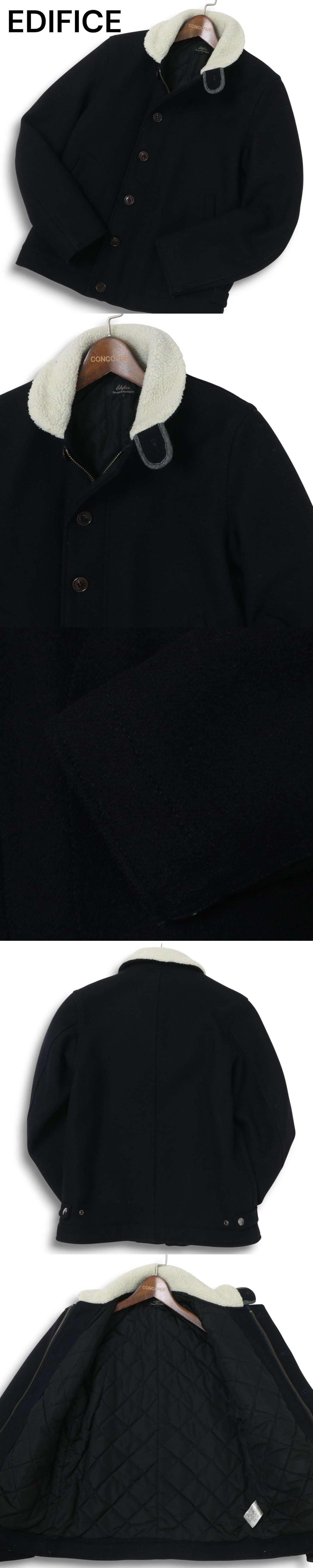 > EDIFICE エディフィス 秋冬★ 襟ボア メルトン ウール 中綿 ジャケット Sz.38 メンズ 紺 ネイビー