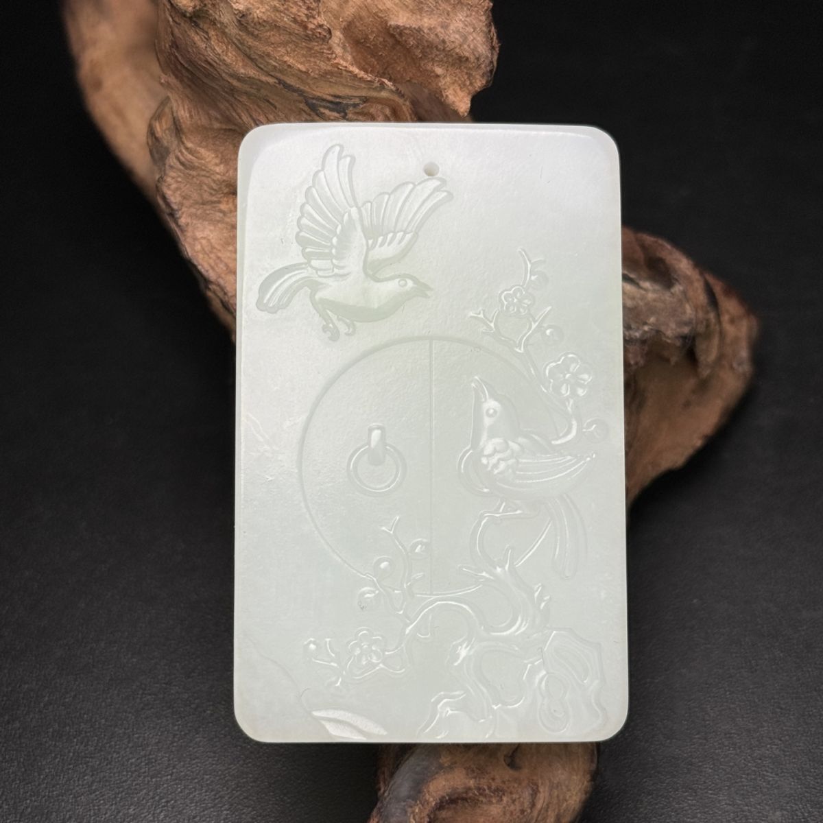 > 永し 清時代 和田玉彫 雙喜臨門 玉牌 置物擺件 古美術品 時代物 古董品 収集 古美味 骨董品 旧家蔵出 中国唐物 46g