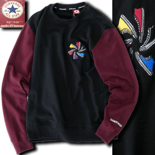 - 新品 コンバース オールスター スニーカー刺繍 裏毛 スウェット トレーナー L 黒 【I59252】 CONVERSE メンズ 丸首 プルオーバー 通年