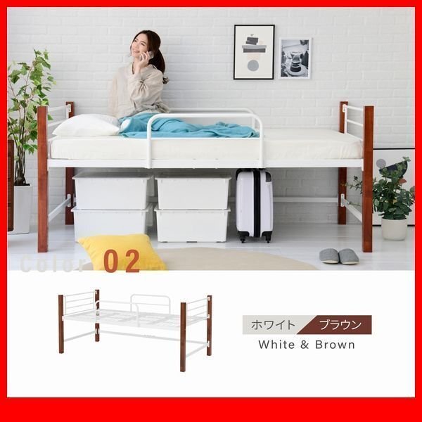 > パイプベッド★天然木脚パイプベッド ミドルタイプ シングル/高級感 安心感 床下空間利用 メッシュ床/ホワイトxナチュラル/a3