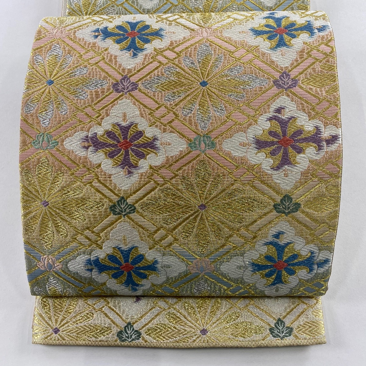 - 【美品】 袋帯 名品 花菱 金銀糸 唐織 金色 六通 正絹 【中古】
