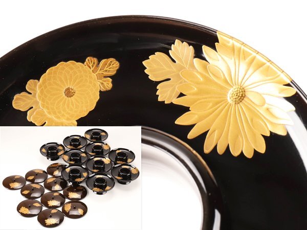【流】木製漆器 菊蒔絵 天目台十客 箱付 PB219