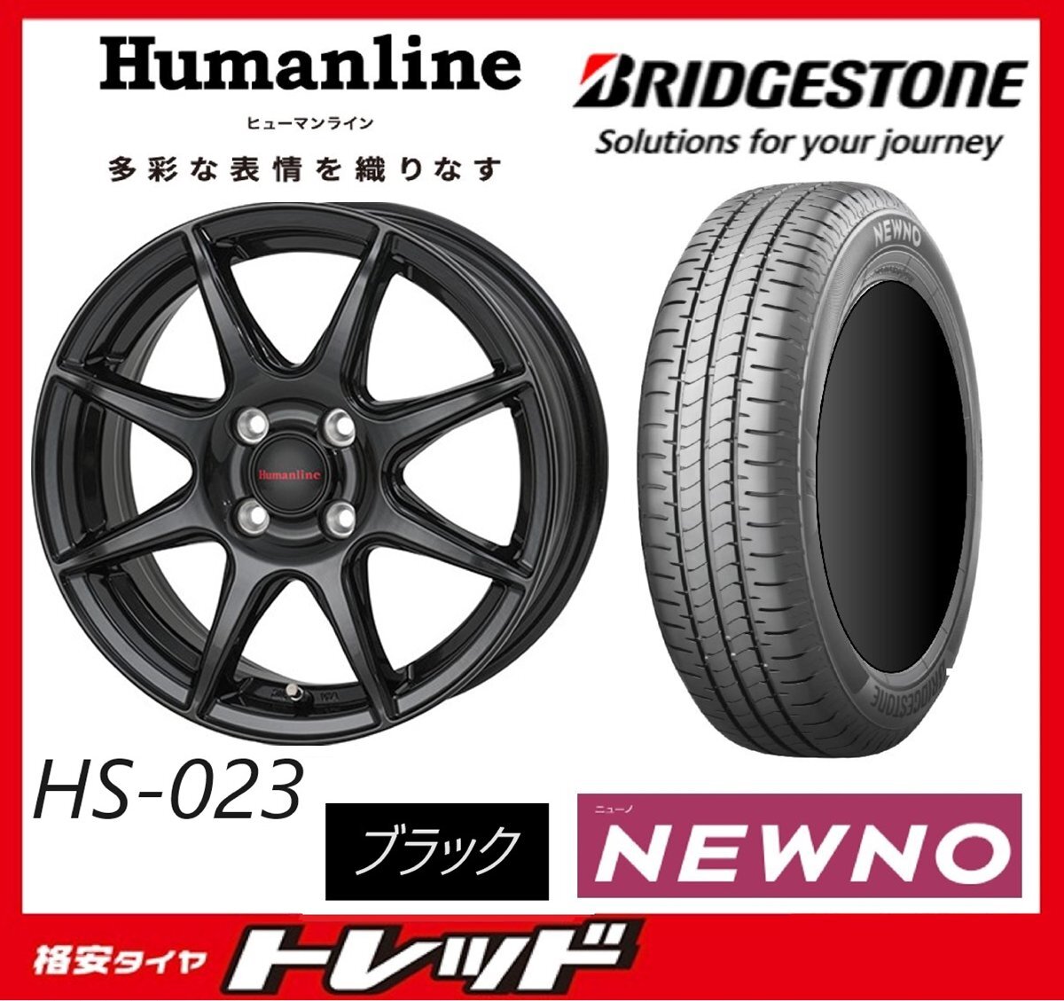 - 数量限定 2023年製)新横浜師岡店 新サマータイヤアルミ4本set Humanline HS-023 15インチ5.5J4穴100+43 ブリヂストン ニューノ 185/65R15