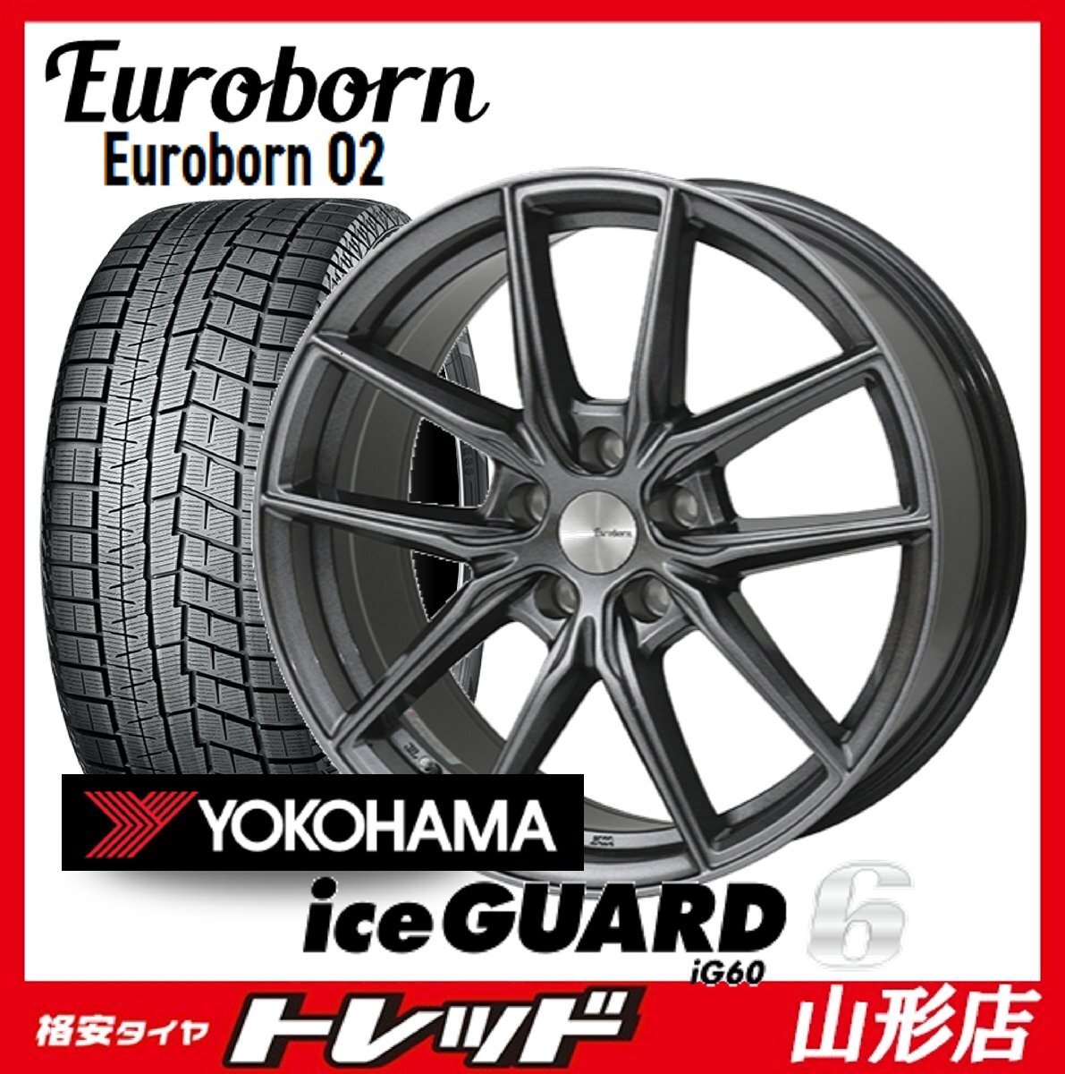 > 山形店 新品 冬タイヤ ホイールセット ユーロボーン02 17インチ 7.0j 5H112 +41 GMBK ヨコハマ アイスガード6 225/60R17 2024年製 BMW