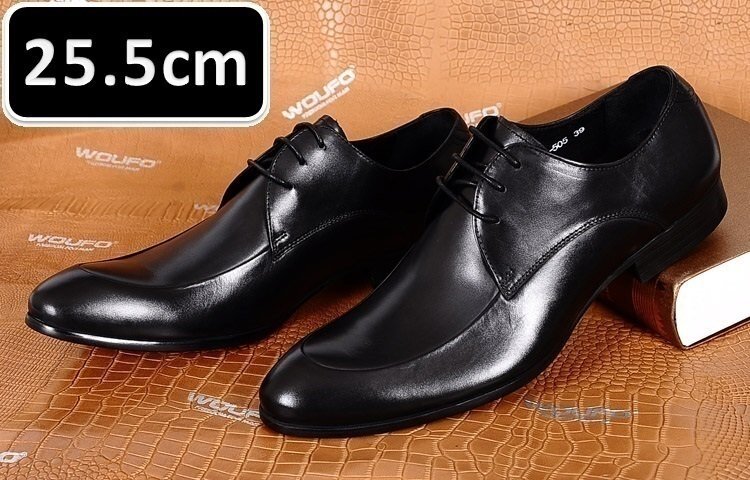 - メンズ ビジネス レザー シューズ 本革 紐 艶ブラック サイズ 25.5cm 革靴 靴 カジュアル 屈曲性 通勤 軽量 新品 【apa-164】