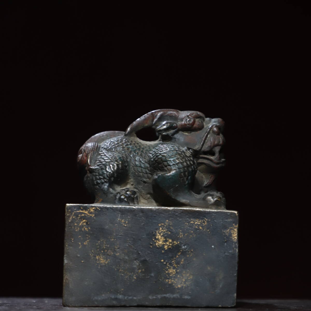 - 旧蔵 古銅彫 拓金 神獸 印章 古擺件 古置物 中国古玩 骨董品 時代物 稀少唐物