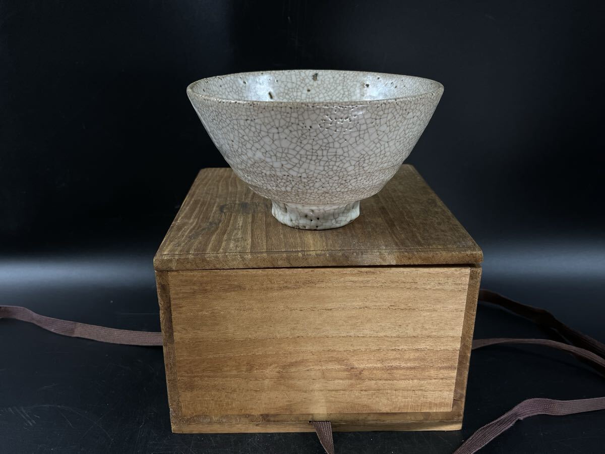 - 井戸茶碗 李朝 朝鮮美術 茶道具 骨董 古玩 古美術 木箱付 時代物【博圓】径14.3cm