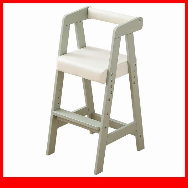 > ベビー キッズ★ハイタイプ キッズチェア 椅子/3段階高さ調整 天然木 PVC座面 コンパクト 軽量 お手入れ簡単/ソフトミント/a4