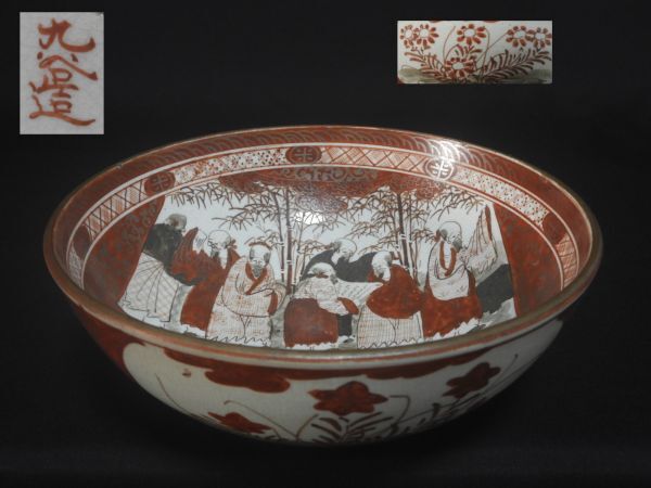 - 鉢 丼 菓子器 九谷造 九谷焼 花人物風景図赤絵丼 明治期 【送料無料】