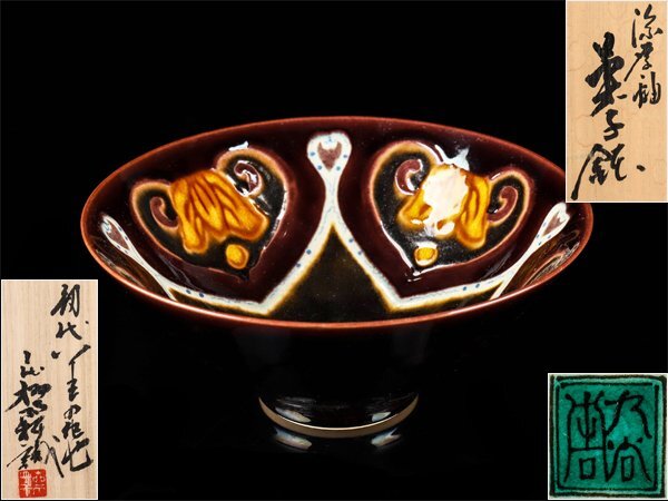 【流】九谷焼 初代 徳田八十吉作 深厚釉菓子鉢 共箱 UD416