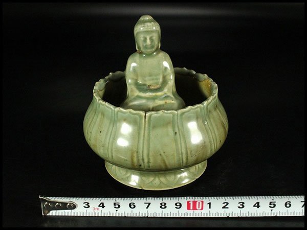 - 【金閣】中国美術 青磁 仏座 蓮弁碗 旧家蔵出 送料無料(A721)