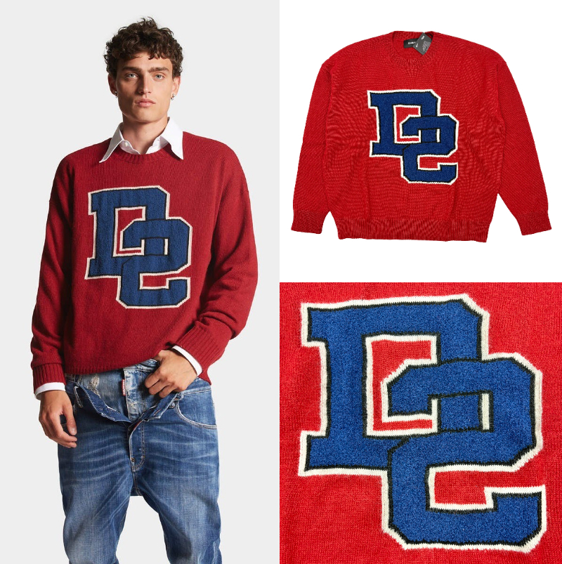> 定価8.3万円■DSQUARED2■D2ロゴ プルオーバーニット◆レッド/赤 トレンドのゆったりフィット■イタリア製■ディースクエアードS74HA1417