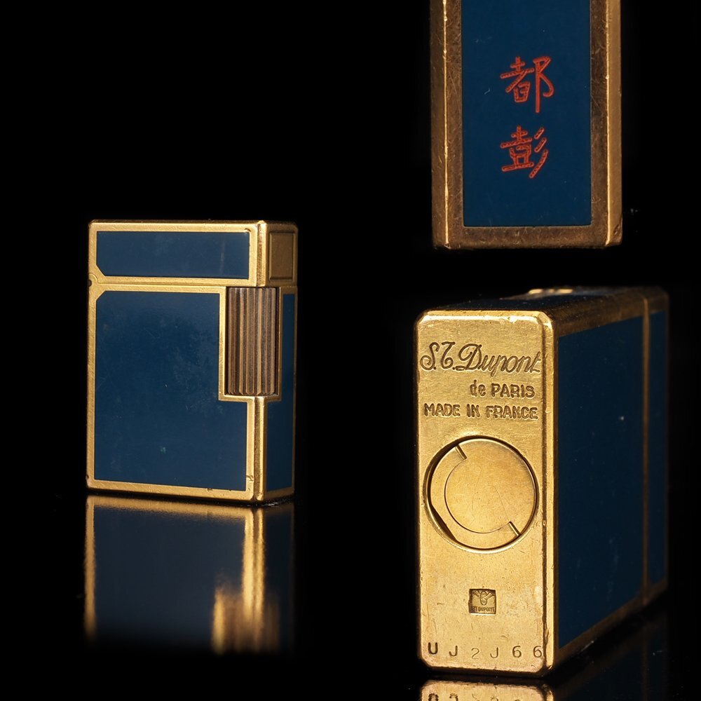 - 【夢工房】S.T.Dupont デュポン ガスライター ゴールド 青漆 都彭銘 TE-048