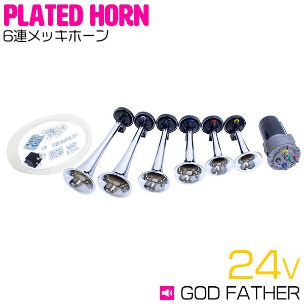 - ラッパ ゴッドファーザー 6連 24V トラック ダンプ 積載車 デコトラ エアー ホーン メッキ コンプレッサー 付き ヤンキー