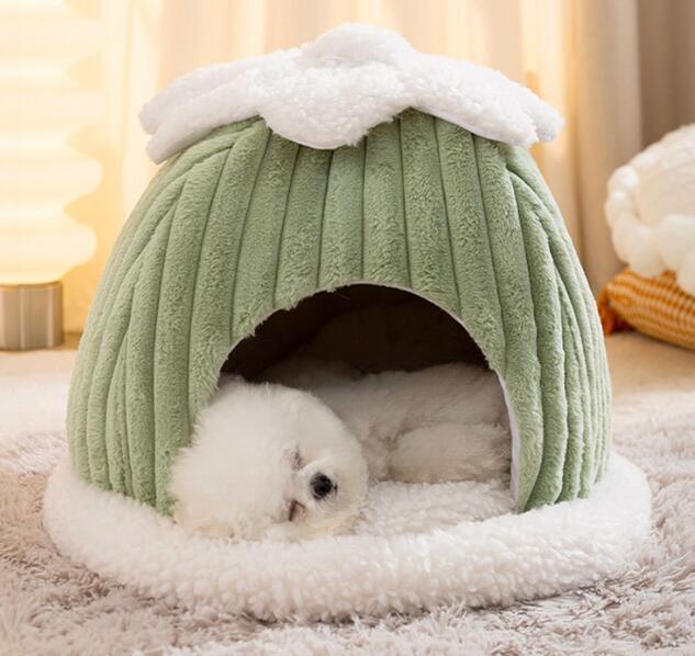 > 新入荷猫 犬 ベッド ふわふわ 暖か カボチャ形キャットペット用品 ペットハウス 滑り止め クッション柔らかい秋冬 グリーン Mサイズ