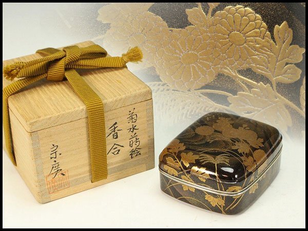 - 【金閣】極上 秋草蒔絵 香合 錫口 旧家蔵出 送料無料(YC278)