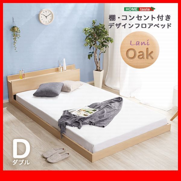 > ダブルベッド★デザインフロアベッド ダブル フレームのみ 2口コンセント付き宮棚 抗菌・防臭機能/ナチュラル オーク/zz