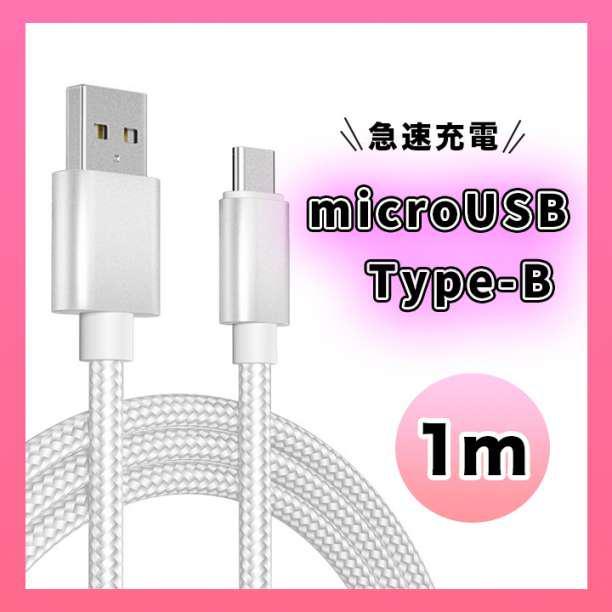 - アンドロイド マイクロUSB タイプB ケーブル 充電器 1M シルバー