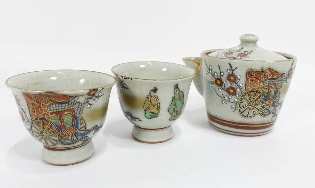 - 3点セット 九谷焼 お猪口 宝瓶 梅 湯呑み 猪口 酒器 茶器 1円~ 日