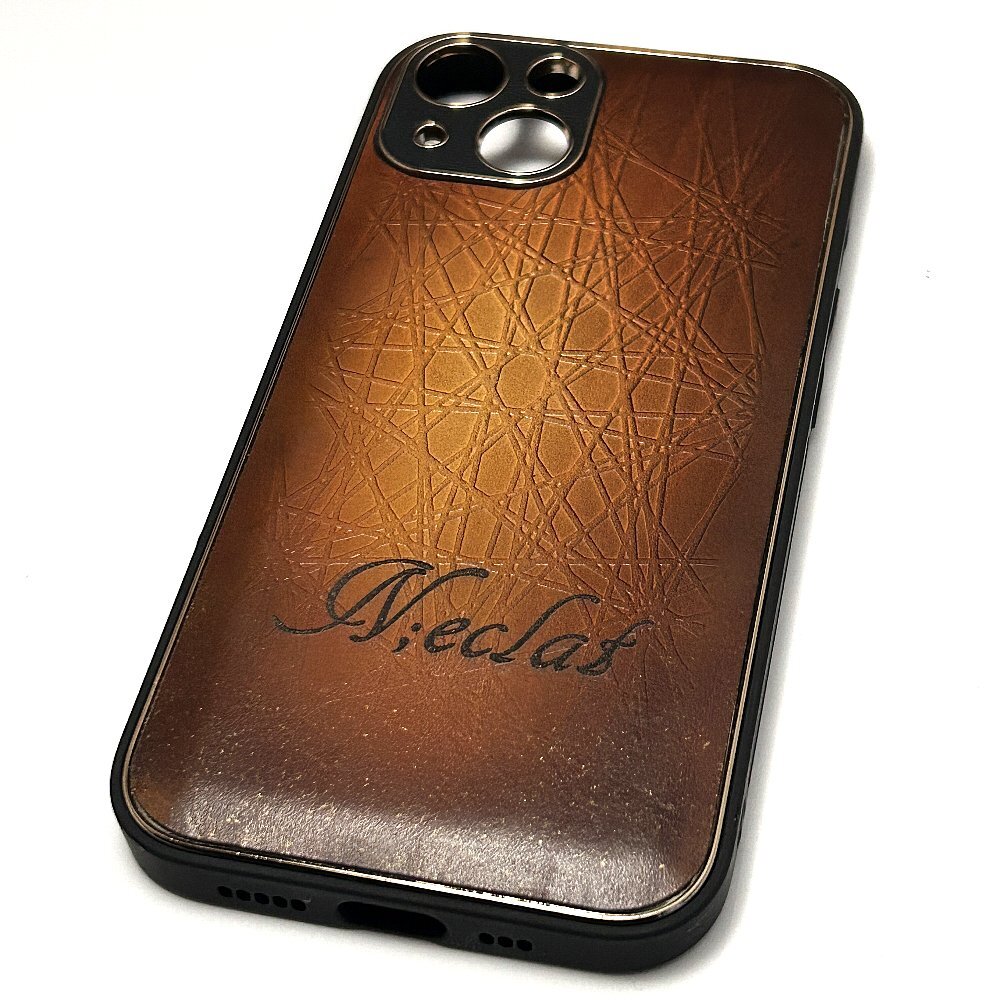 - 【エヌ エクレ】パティーヌ型押し本革レザー iphone14 アイフォンケース ウッドブラウン 茶樹木 限定 長財布 カードケース yuhaku