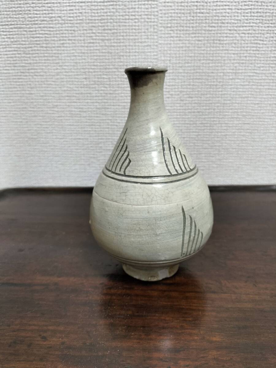 - 【本物保証・無傷】李朝前期【羽衣手刷毛目徳利】/高麗青磁粉引黒高麗ぐい呑酒器茶碗茶道具鶏龍山古染付古唐津黄瀬戸白磁三島志野李朝初期