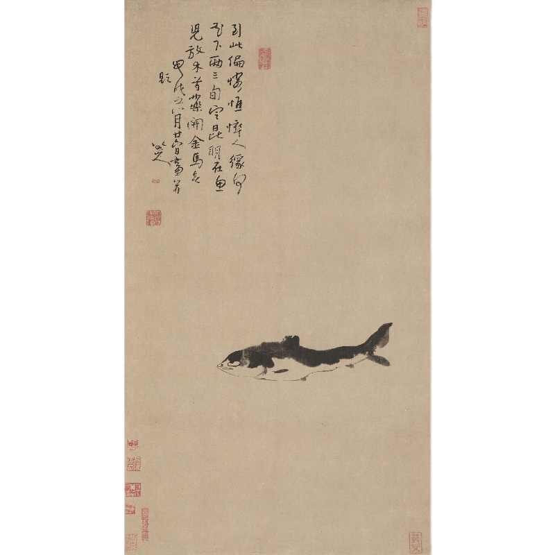 - 魚禅図 清 朱垂 八大山人 名人書画 掛絵 娟本画心 装飾 掛け軸 東洋画 未表装