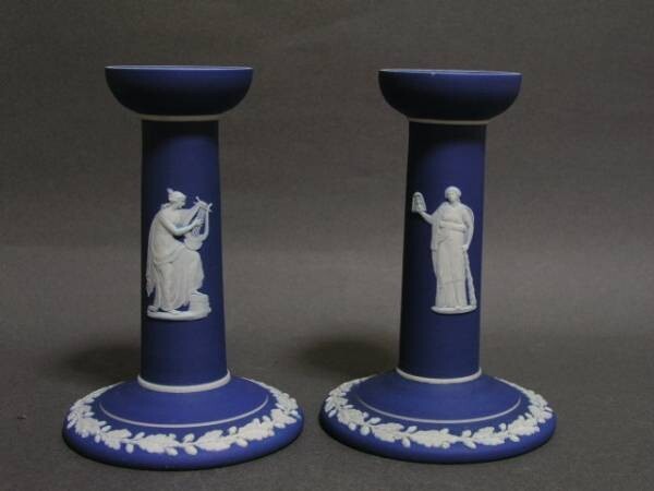 - ◎1930年代 ウェッジウッド 青色を被せた白のジャスパー キャンドルホルダー2個◎