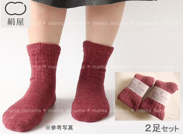 - 新品 絹屋 2足セット 冷えとり 2重編み シルク × コットン 靴下 えんじ 22.5cm-24.5cm ヴィンテージ風 綿 くつした ソックス レディース